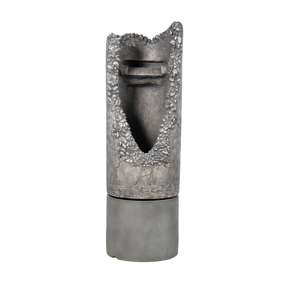 Give a garden or other outdoor setting the tranquil sound and rustic decorative accent it needs with this stone fountain. Within this tall, stone-colored column, water trickles and falls through the purposefully cracked opening. This tall, slender fountain will fit in with just about any kind of natural outdoor setting.
