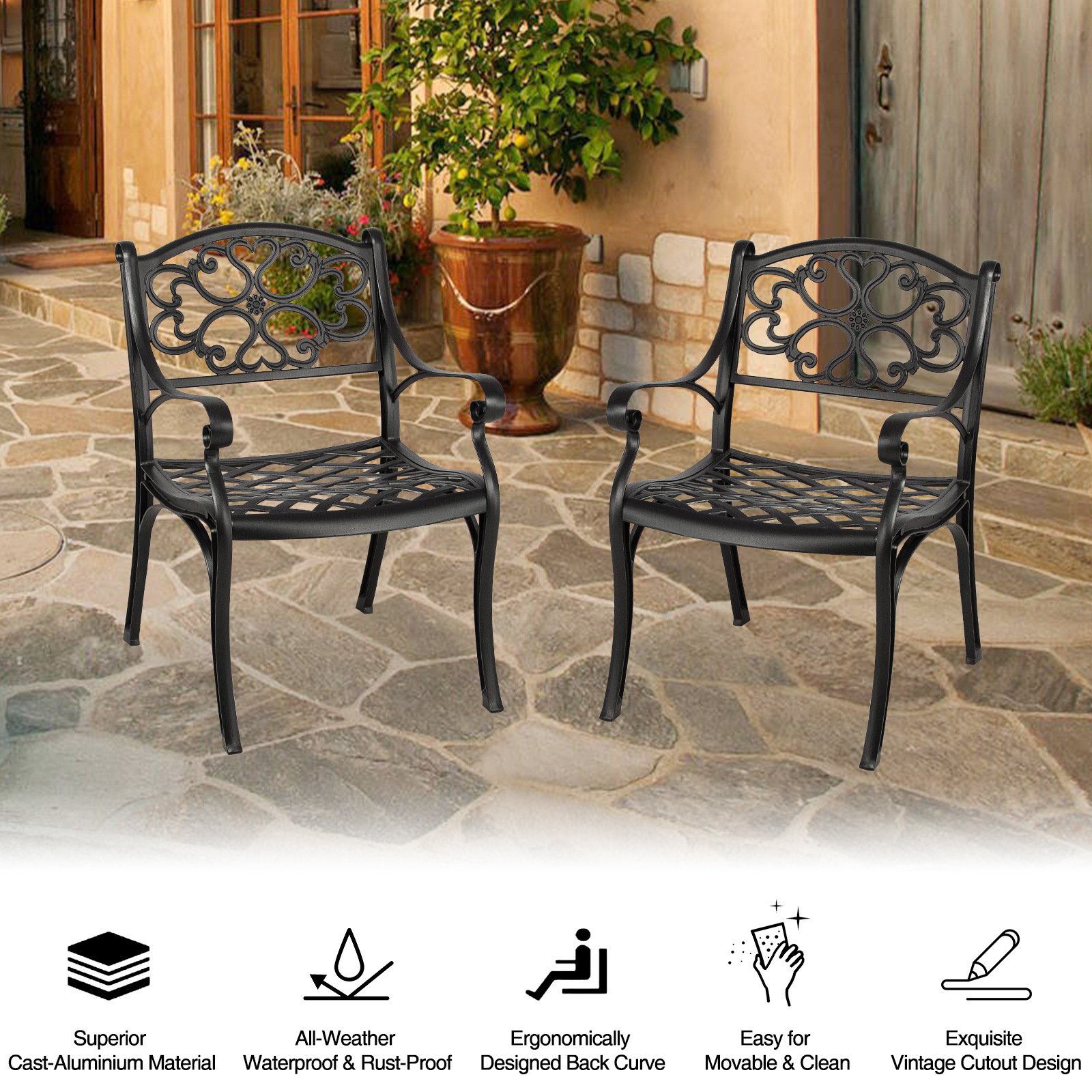 Home > 2 Piece Outdoor Dining Chairs, Cast Aluminum Chairs with Armrest, Patio Bistro Chair Set of 2 for Garden, Backyard (Flower pattern 2 Chairs)