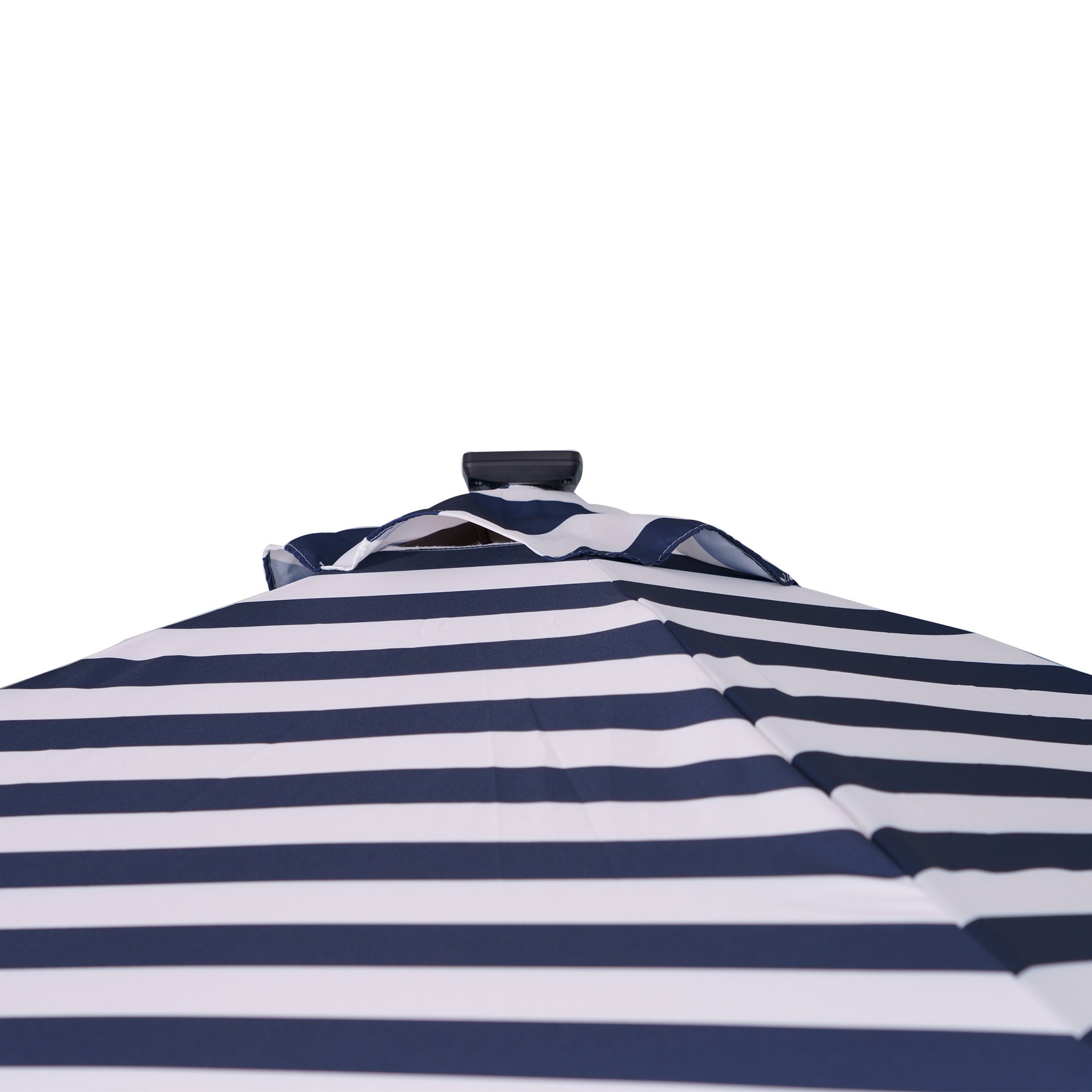 [Wind Vent]It has an air vent at the top to stop the wind pulling the parasol upwards. It also helps to keep you cool when you're sitting beneath the canopy while adding extra stability.