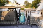 One aluminum gas fire pit table = one rectangle rattan wicker table + one firepit system