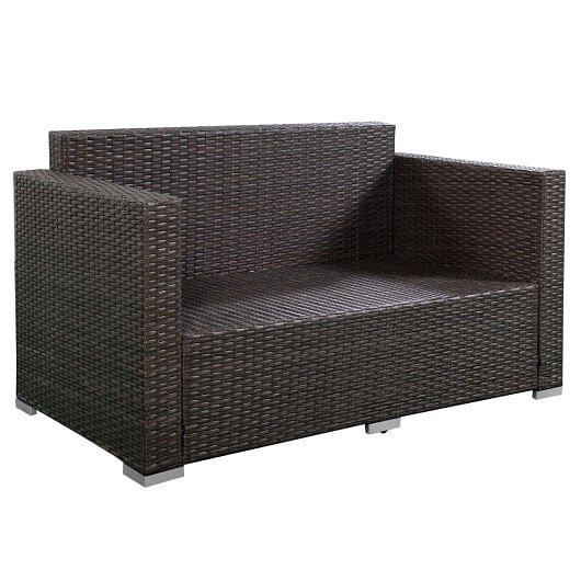 Home > 4 Pieces Brown Wicker Rattan Sofa Furniture Set Patio Garden Lawn Cushioned Seat